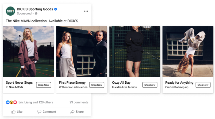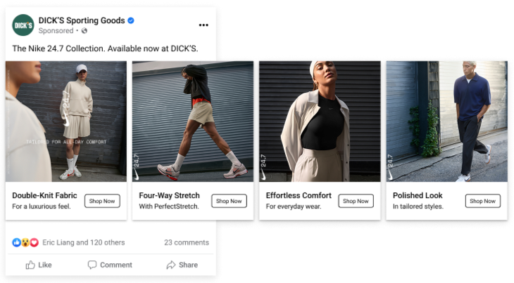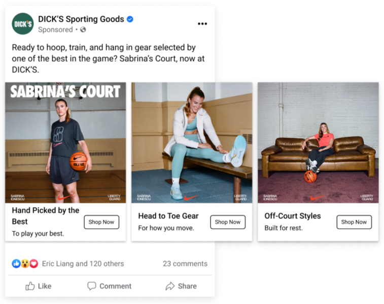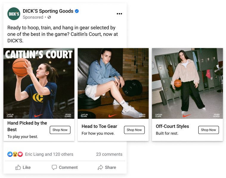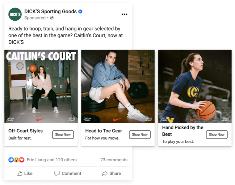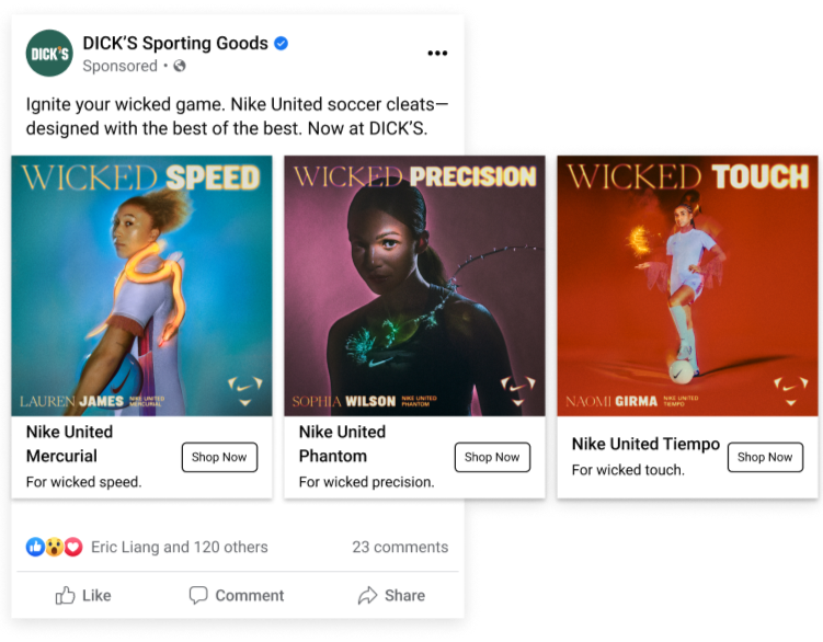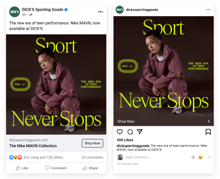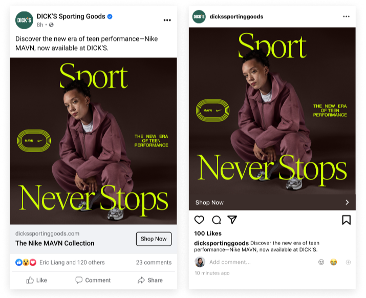 I write paid media copy for Nike campaigns across DICK’S Sporting Goods channels, driving engagement and sales through social, display, and conversion content.